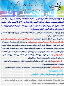 پـاسخ به سوال هدایت تحصیلی(اختصاصی – شماره 258) : اگـر داوطـلبـی بـتـوانـد در امتحانات نهــایی دیپـلم، نمرات بالایــی مثلاً معدل بین 19 تا20 کسـب نماید ، چقـدر احتــمال پـذیـرش او برای رشته هایی مثـل بـرق و یا الـکترونیک در دوره روزانــه از طریق پذیرش 85% بدون کنکور وجود دارد؟