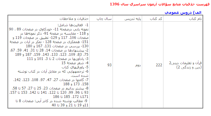 فهرست منابع سوالات ازمون سراسري سال 1396 به علاوه حذفیات منابع