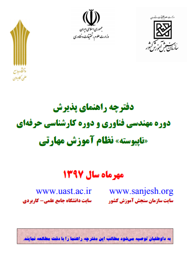 »»»دانلود متن کامل دفترچه»»» دفترچه راهنماي پذيرش دوره مهندسي فناوري و دوره كارشناسي حرفه اي «ناپيوسته» نظام آموزش مهارتي مهرماه سال 1397