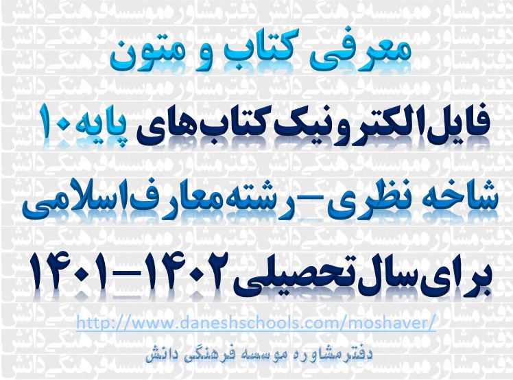کتاب های پایه10؛معرفی برای سال تحصیلی۱۴۰۲-۱۴۰۱ ( شـــــــاخه ی نــــظری – رشتــه ی معارف اسلامی )