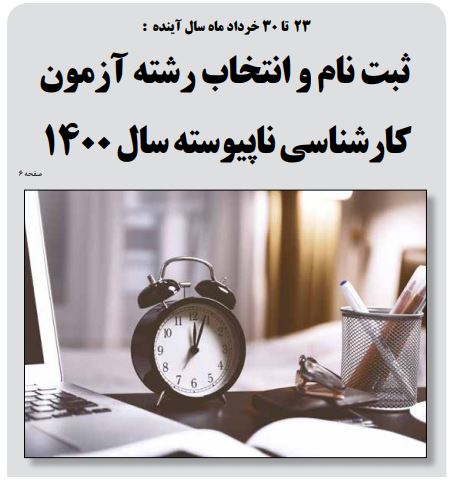 ثبــت‌نام و انتـخاب رشته آزمون کارداني بـــه کارشنـاسي نـــــاپيـــوسته بـا آزمون و بـــــدون آزمون (صرفــــاً براساس ســوابــــق تـحصیــــلی ) ســال 1400 + جــداول رشتــــه ها